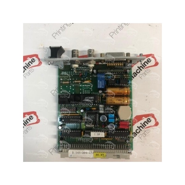 The KBA Rapida Arcnet Board (BDT A.141-204-33) is a communication module used in KBA Rapida printing presses, enabling network connectivity via Arcnet protocol for machine control and data exchange within the system