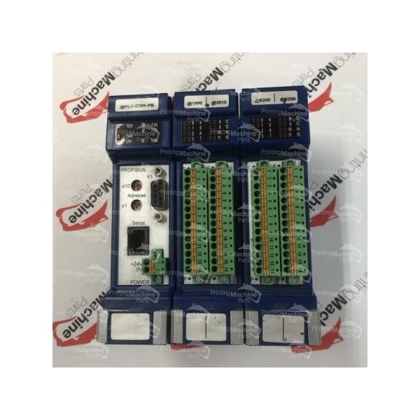 The TR-Systemtechnik PLC-C101-PB is a Profibus-DP programmable logic controller designed for multi-axis industrial automation, often used in KBA offset printing presses. The associated @ctiveIO module serves as an I/O interface, enabling communication between the PLC and peripheral devices. Together, they provide precise control and connectivity for complex printing machine operations in industrial environments