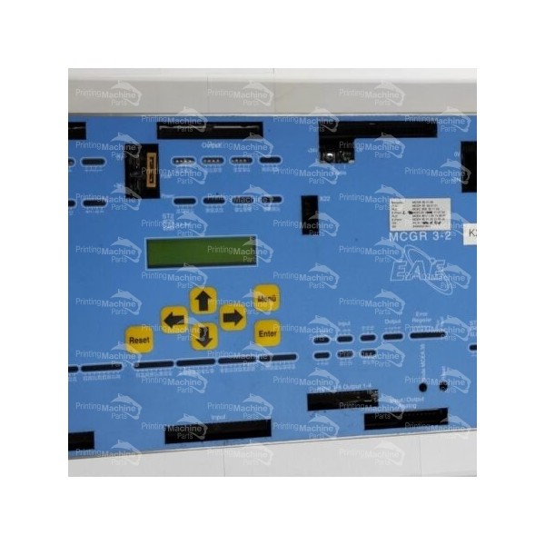 The EAE MCGR 3‑2 K2121 (L0862088) is a control regulator module in the EAE system of KBA Rapida 72/74 printing presses. It handles logic/regulation tasks for the press’s control architecture and is available as a spare component in excellent condition.